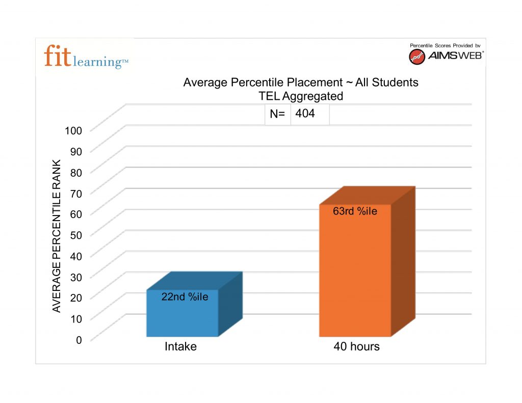 Preschool children enrolled in Lil Fits gained an average of 41 percentile ranks after 40 hours on Tests of Early Literacy (TEL), a standardized test given at Fit Learning.