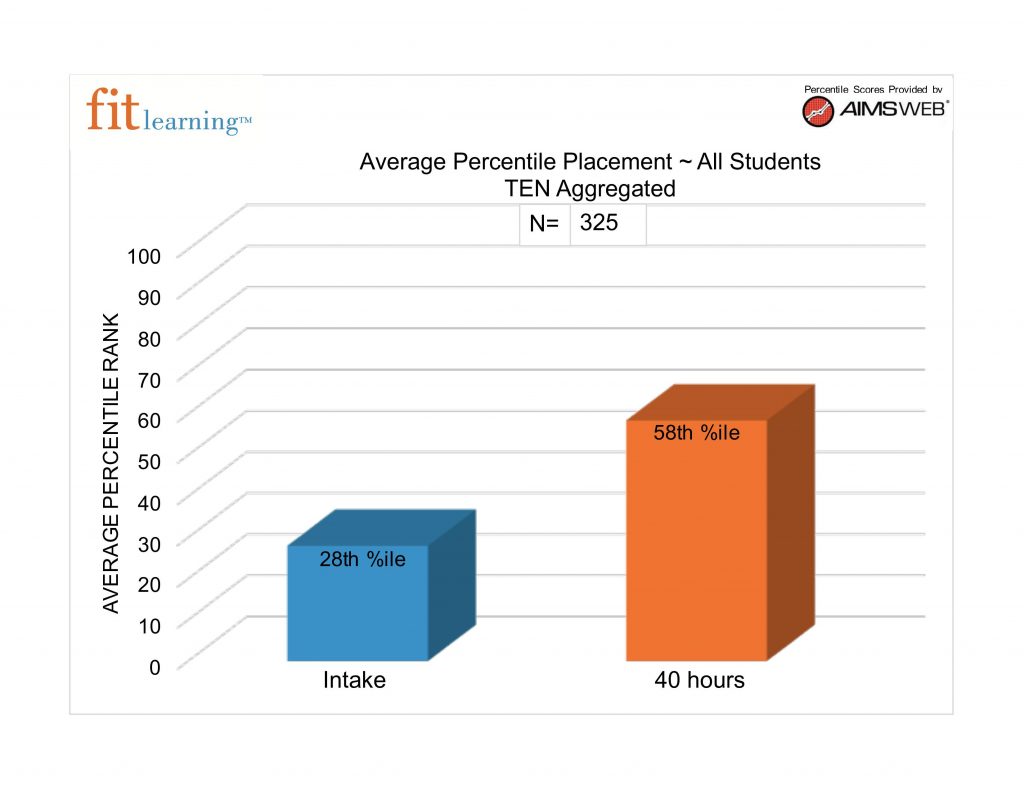 Students enrolled in Lil Fits improved an average of 30 percentile ranks after 40 hours on Tests of Early Numeracy (TEN), a standardized test given at Fit Learning.