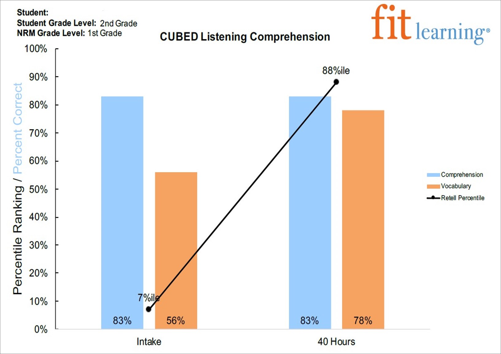 In the graph above, the learner improved their listening comprehension skills from the 7th to the 88th percentile.