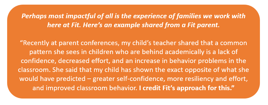 Overall, Fit Learning’s impact on student self-confidence stems from its ability to address underlying cognitive challenges, provide personalized support, and foster a positive learning environment. As Fit students experience success, receive positive feedback, and develop a deeper understanding of their own learning process, their self-esteem and confidence will continue to grow, leading to success in class … and throughout their academic journey.